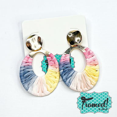 Add a pastel pop of color to your look with our Pink + Yellow + Navy Raffia Hoop Earrings. Featuring a textured design in a soft colors, these earr...