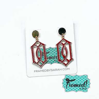 Add a bold pop of color to your look with our Red Trellis Earrings. Featuring a modern geometric trellis design in a rich red finish, these earring...