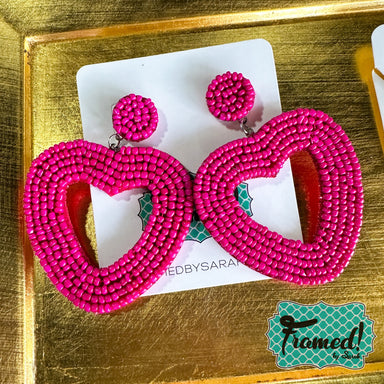 These dark pink beaded heart shaped earrings are the perfect accessory to add some romance and femininity to your look. The earrings feature a beau...
