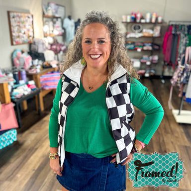 This Checkered Zip-Up Puffer Vest features side pockets and is oh so cute! It's made of 100% polyester and can be worn with any tee or sweater unde...