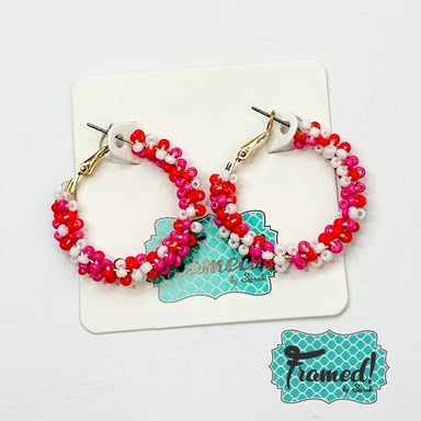 Add a pop of color to your outfit with our Red Pink & White Beaded Hoop Earrings. These unique earrings feature a beautiful combination of colo...