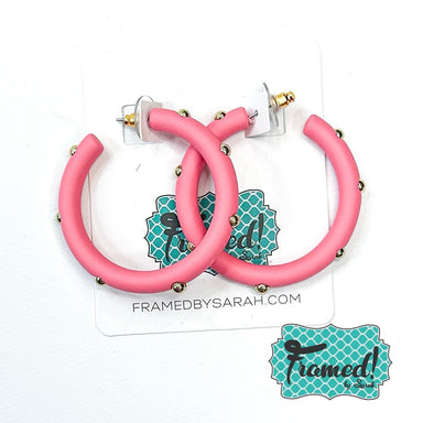 Elevate your style with our Pink Stud Hoop Earrings, the perfect mix of classic elegance and modern edge. Featuring a bold pink hue and delicate st...